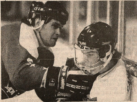 Bob Lindsay’s power play goal at 14.51 of the third overtime decided the contest. The winner was assisted on by Murchison and game after Moncton’s Martin Lacroix was given a five minute major for cross checking the Caps Shawn Keough into the boards.