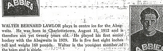 Walter Lawlor 1930-31 Charlottetown Abbies.